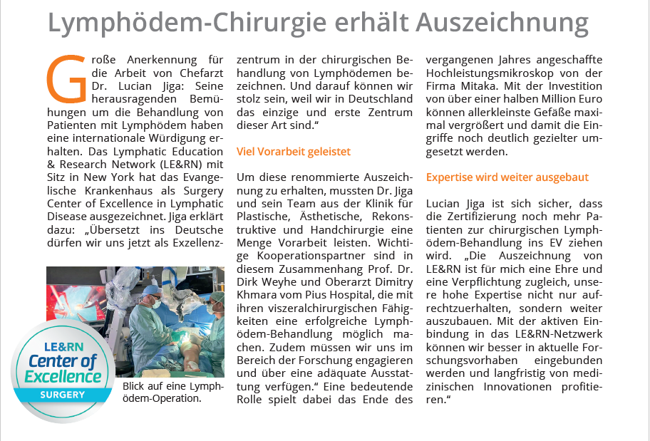 Willkommen im Exzellenzzentrum für Lymphatische Mikrochirurgie am Evangelischen Krankenhaus Oldenburg – Ihrem spezialisierten Ansprechpartner für modernste Diagnostik und hochpräzise mikrochirurgische Therapien des Lymphödems.